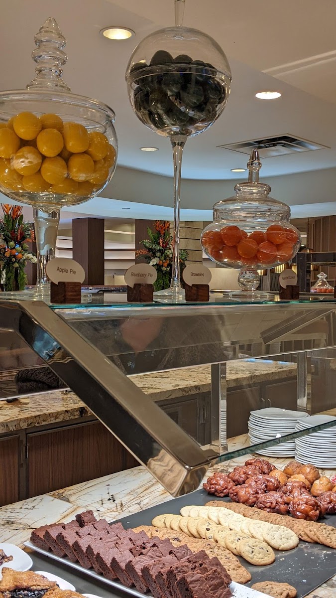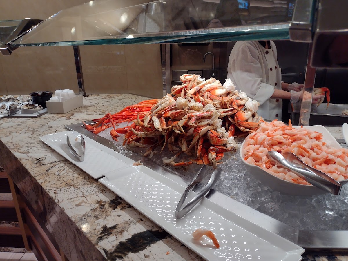 The atmosphere is casual and somewhat bustling, especially on weekends and holidays when specials like the steamed crab legs and seafood spread are featured. These seafood offerings tend to be the highlight, with fresh crab legs, shrimp, and blackened salmon serving as main attractions. Beyond seafood, the restaurant makes an effort to keep a diverse menu flowing, including a salad bar, roasted meats such as prime rib and notably well-regarded turkey, pizza, and a pretty extensive dessert section. The dessert station's offerings—ranging from carrot cake to gelato and seasonal treats like cotton candy views—add a playful touch, though some visitors have noted desserts can be hit or miss compared to other parts of the buffet.